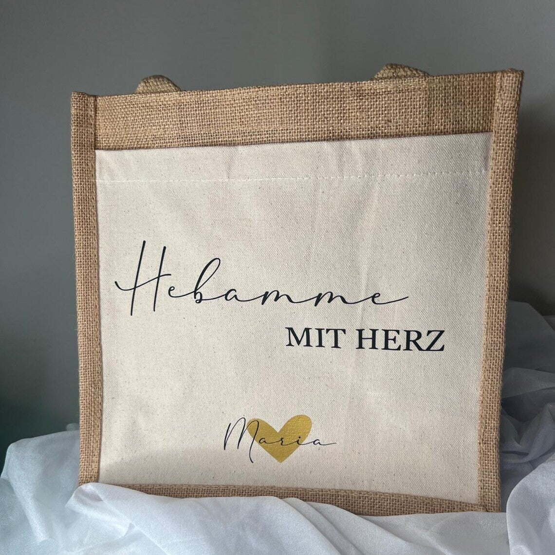 Hebamme | Lehrerin | Erzieherin | Geschenk | Jutetasche | Hebamme mit Herz | Logo