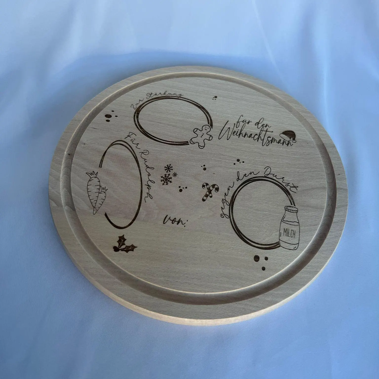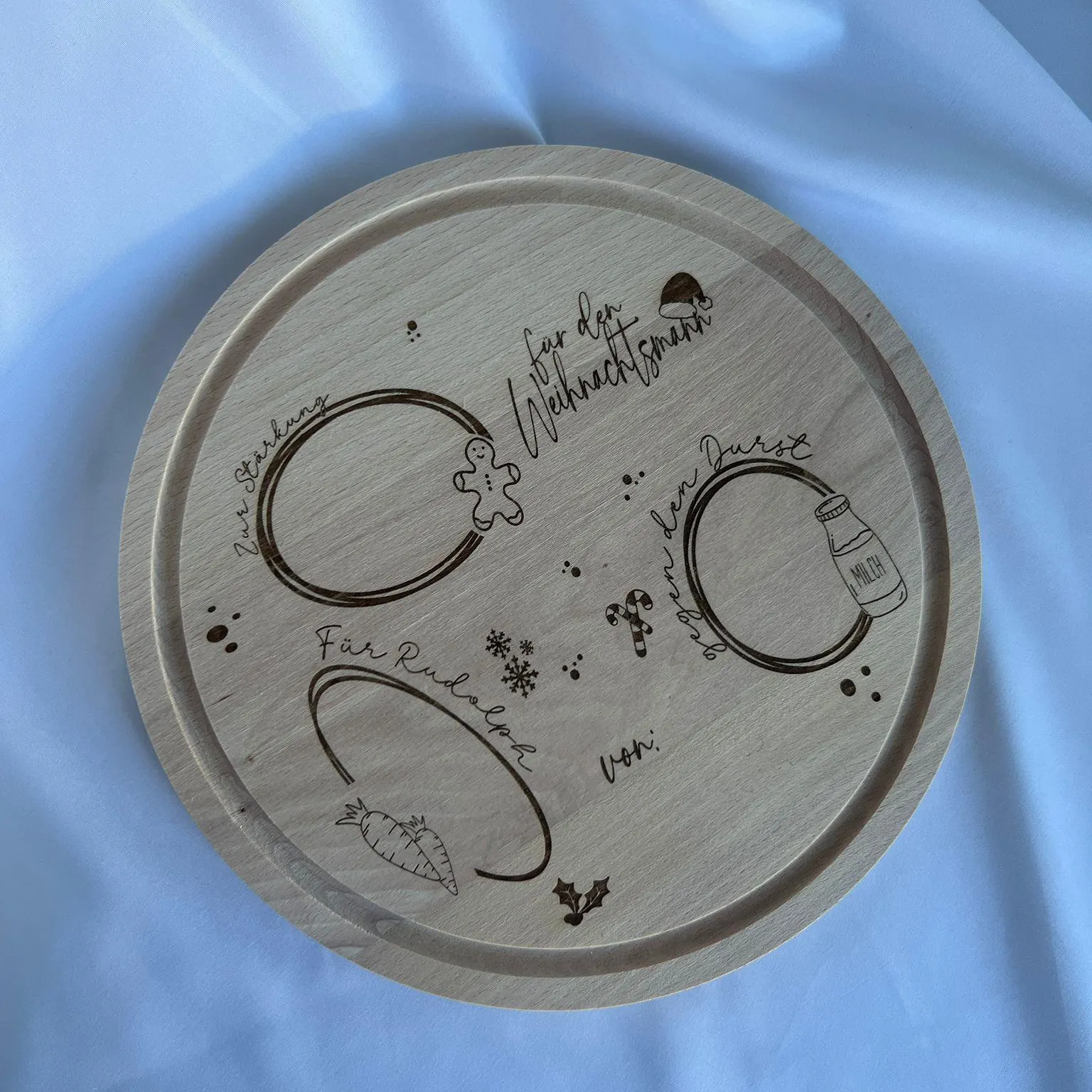 Dieser wunderschöne, personalisierte Teller ist perfekt geeignet für die festliche Tradition, dem Christkind, Nikolaus oder Weihnachtsmann Kekse und Milch bereitzustellen. Mit einem Durchmesser von 25 cm bietet der Teller ausreichend Platz, um süße Leckereien sowie ein Glas Milch für den Weihnachtsmann und eine kleine Karotte für das Rentier bereitzustellen.