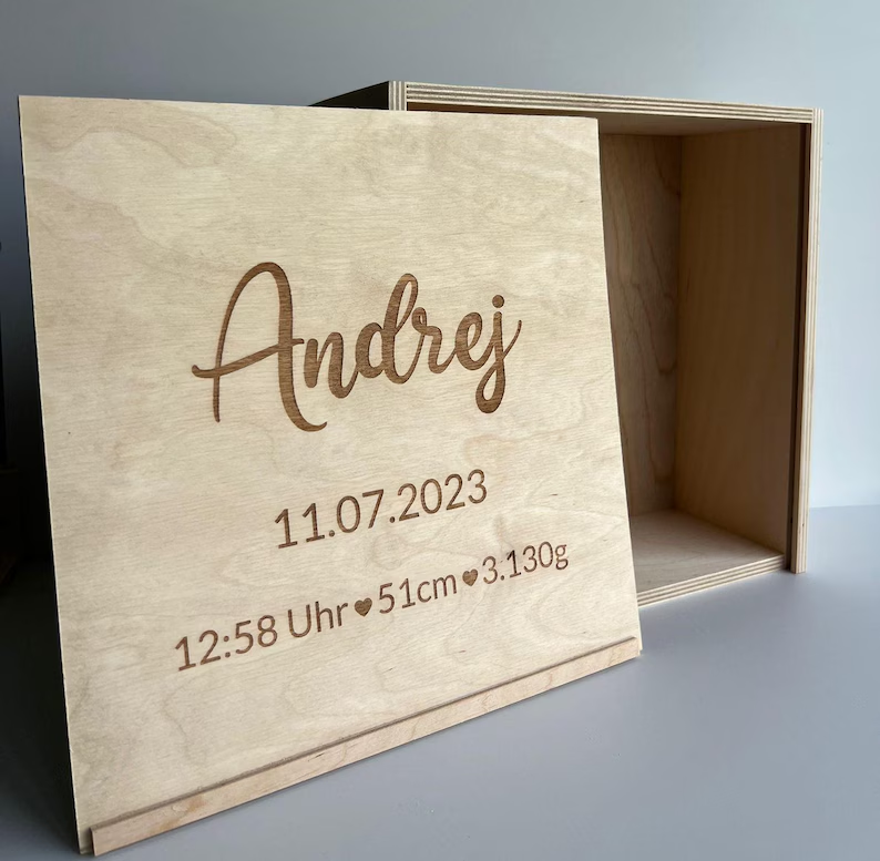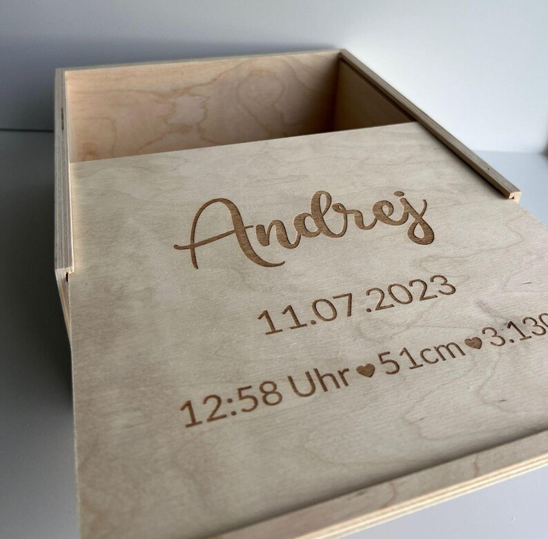 Diese Box ist nicht nur funktional, sondern auch ein dekoratives Element, das in jedem Raum stilvoll zur Geltung kommt. Personalisieren Sie die Box mit einem Namen, Datum oder einer speziellen Nachricht, um sie noch einzigartiger zu machen.
